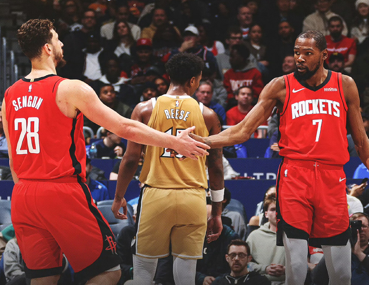 从领先19分到5分险胜,火箭队众志成城,杜兰特、申京和阿门三人合力砍下84分32板7助3断2帽。其中,杜兰特砍下30分+7篮板+1助攻+1盖帽,他以37岁155天的年龄成为火箭队史连续3场比赛砍下30+最老的球员;申京贡献32分+13篮板+2助攻+1抢断+1盖帽,据统计,这是申京本赛季第5次单场砍下30分+10篮板,排在中锋第4位,仅次于约基奇(16次)、文班亚马(7次)和唐斯(6次);阿门攻下22分+12篮板+4助攻+2抢断,第四节脚踝受伤提前离场。美中不足的是,杜兰特、申京和阿门加起来出现了16次失误,差点葬送好局,好在谢泼德不辱使命,打出一场宣言式的比赛,逆天改命。